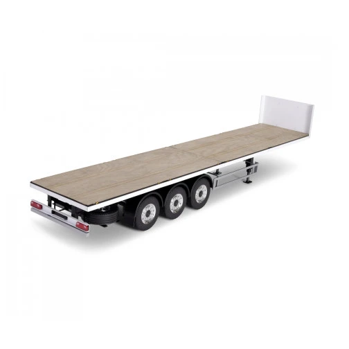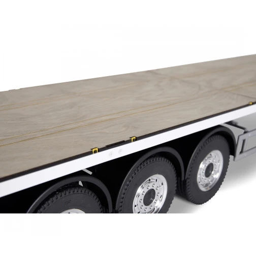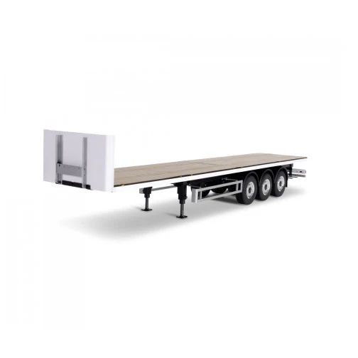 Der CARAON 3-Achs-Flachbettauflieger im Maßstab 1:14 ist die perfekte Ergänzung für alle TAMIYA-Zugmaschinen. Das Bausatzmodell mit verwindungssteifem Stahlrahmen und einer massiven Frontwand aus Aluminium beeindruckt mit Detailreichtum, Qualitativ-Hochwertige High-End-Verarbeitung und einer grandiosen Optik. Highlights sind die neuen Aufliegerachsen (Standard/+8mm Höherlegung), kugelgelagerten Chromfelgen mit Breitreifen, der Reserveradhalter aus Stahl, 16 integrierte/versenkte Verzurrösen sowie der Echtholzboden auf der Ladefläche. Mit dem passenden 1:14 Umrüstsatz (N° 500907649) lässt sich der Flachbettauflieger zu einem Baustoffauflieger mit funktionalen Bordwänden aus Aluminium umbauen.