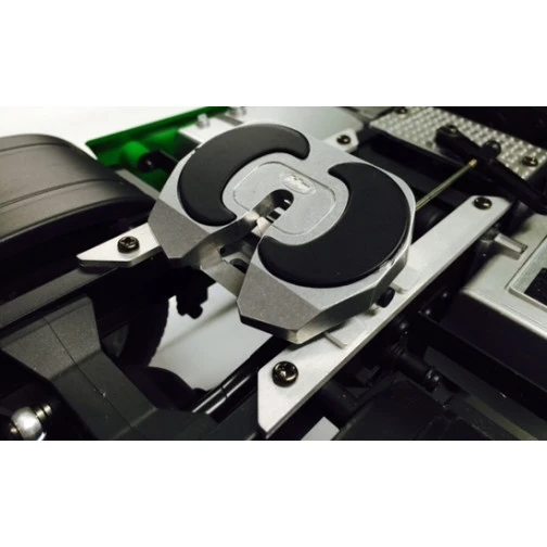 Die Aluminium Sattelkupplung ist offiziell durch die Firma SAF Holland GmbH lizensiert und passend für alle TAMIYA Trucks im Maßstab 1:14. Die Montage der Sattelkupplung ist einfach zu bewerkstelligen, es findet ein 1:1 Austausch statt. Bei Verwendung der TAMIYA Multifunktionseinheit MFC-01 oder MFC-03, kann der Mikroschalter für das „Koppelgeräusch“ ganz einfach an den dafür vorgesehenen Platz montiert werden. Sollten Sie keine Multifunktionseinheit verwenden, so wird hier die im Baukasten enthaltene Verriegelung verwendet. Die Eingesetzten Gleitpolster verleihen dem Modell einen weiteren Punkt an Funktionalität und Detailierung.