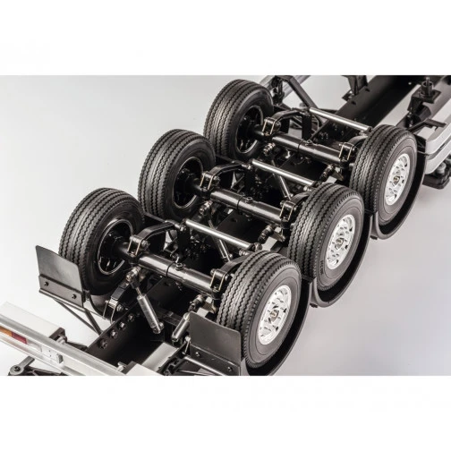 Mit dem Auflieger-Fahrgestell im Maßstab 1:14 wird der Container-Transport zum Kinderspiel. Das detailreiche Modell mit CNC-gefrästem Alu-Rahmen ist die perfekte Ergänzung für Ihre Tamiya-Zugmaschine. Weitere Features des Auflieger-Fahrgestells sind mechanische Sattelstützen, eine Pendelachsenaufhängung mit Blattfedern und Breitreifen mit Schaumstoffeinlagen sowie verchromte Felgen. Die Containerbefestigung ist variabel. Als Fracht eignet sich unter anderem der neue Carson-Flüssigkeitscontainer (Artikelnummer: 500907349).