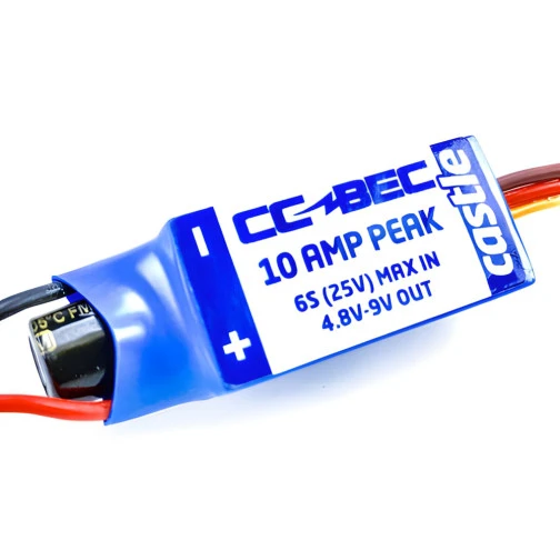 CC BEC (Battery Eliminator Circuit) ist ein kleines Gerät, das die Notwendigkeit einer Empfängerbatterie beseitigt. Es zieht die Spannung direkt von Ihrem Antriebsakku und regelt es auf ein Spannungsniveau, welches für Ihren Empfänger und Servos geeignet ist. Dies ist bei Anwendungen erforderlich, die Hochleistungs-Servos verwenden, wo der ESC kein internes BEC hat, oder das bestehende BEC unzureichend ist.