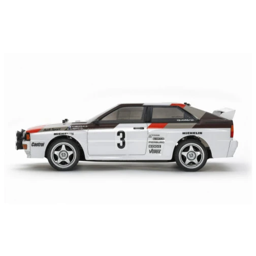 Die Karosserie gibt die typische Form des Audis gut wieder und besteht aus leichtem sowie robustem Polycarbonat. Zusammen mit den dazugehörigen Stickern, erhält das Rally-Modell sein unverkennbares Aussehen.