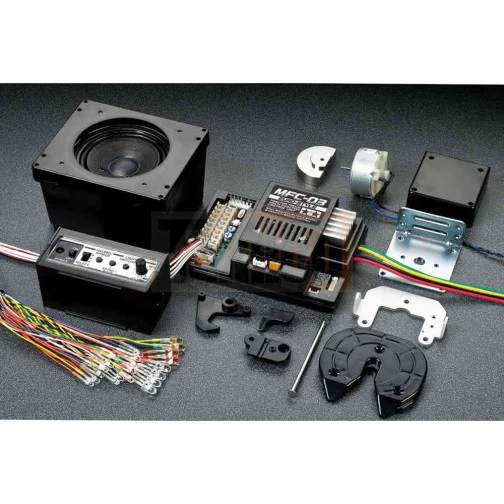 Die TAMIYA Multifunktionseinheit MFC-03 Euro-Style simuliert in LKW-Modellen nahezu alle Sound- und Lichtfunktionen der großen Vorbilder. Sie ergänzt mit dem an einem europäischen Reihensechszylinder-Dieselmotor aufgenommen Sound perfekt TAMIYA-Modelle wie den MAN TGX, Mercedes Benz Actros, Scania R470 und weitere.