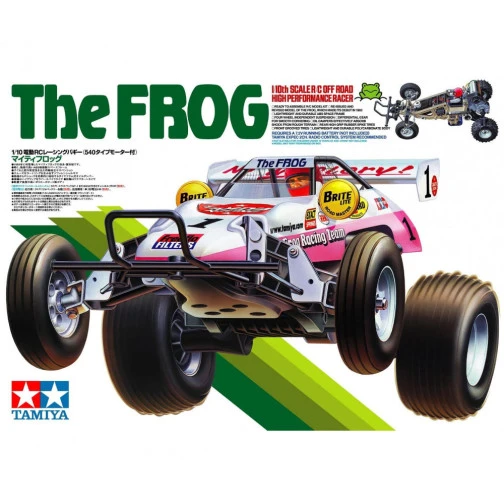 Der 1983 erstmals vorgestellte 2WD-Rennbuggy Frog sorgte mit seinem auffälligen Design und seiner hohen Fahrleistung für großes Aufsehen. Der Frog feiert nun ein Comeback, aktualisiert für ein neues Zeitalter, aber mit seiner Grundstruktur im Wesentlichen unverändert. Der charakteristische Rahmen wurde beibehalten, die Öldämpfer für die Hinterradaufhängung wurden auf Diaphragma-Bauweise umgestellt. Die hintere Antriebswelle verfügt über ein Dog-Bone-Gelenk für eine sichere Kraftübertragung. Die schlanke Polycarbonat-Karosserie bleibt unverändert, während die dreiteiligen Räder mit Rillenreifen vorne und Spike-Reifen hinten für ein hervorragendes Fahrverhalten im Gelände sorgen.